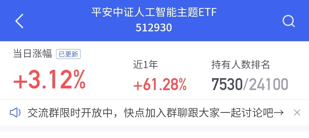 $平安中证人工智能主题ETF$ 今晚涨3.12%