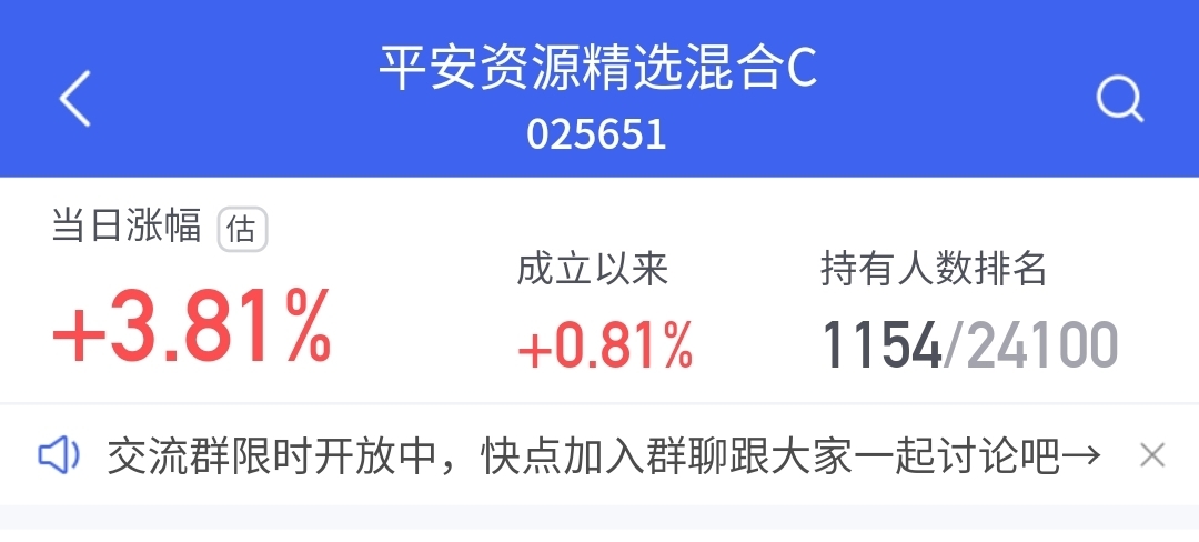 $平安资源精选混合C$ 预估也是大涨3.81%