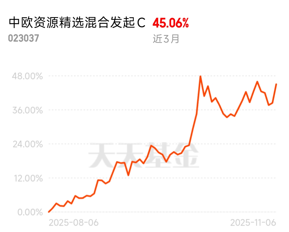 这市场真是让人头疼,涨一天跌两天,热门板块说变就变,很难把握节奏。中欧资源精选混合C稳扎稳打,近3个月涨了45.06%,深耕资源周期领域,基金经理精准拿捏供需关系,布局的能源金属、小金属等需求看涨,靠谱又省心。$中欧资源精选混合发起C$