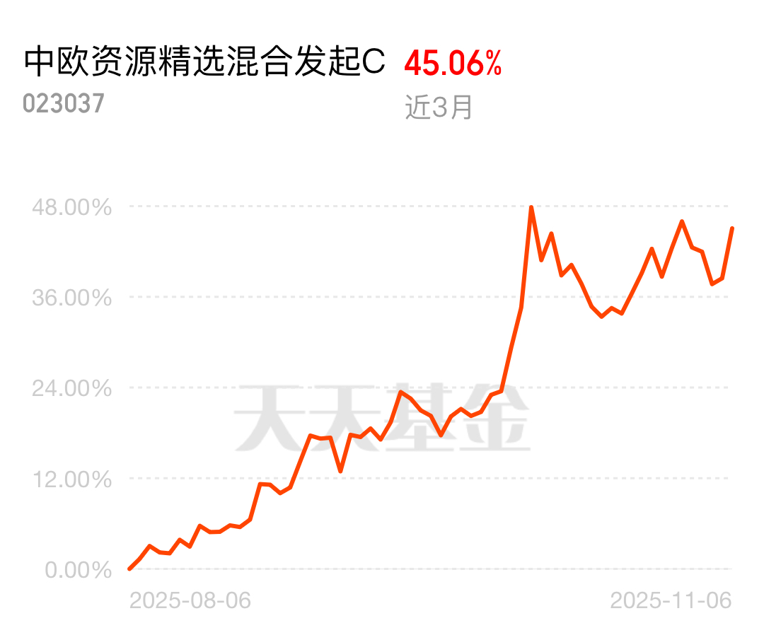 大盘最近跟打摆子似的,忽上忽下没个准,好多板块刚有起色就回调,让人失望透顶。中欧资源精选混合C稳如,近3个月涨了45.06%,专注资源投资不跑偏,布局的都是刚需稀缺矿产,供需紧平衡加上政策支持,收益稳稳当当。