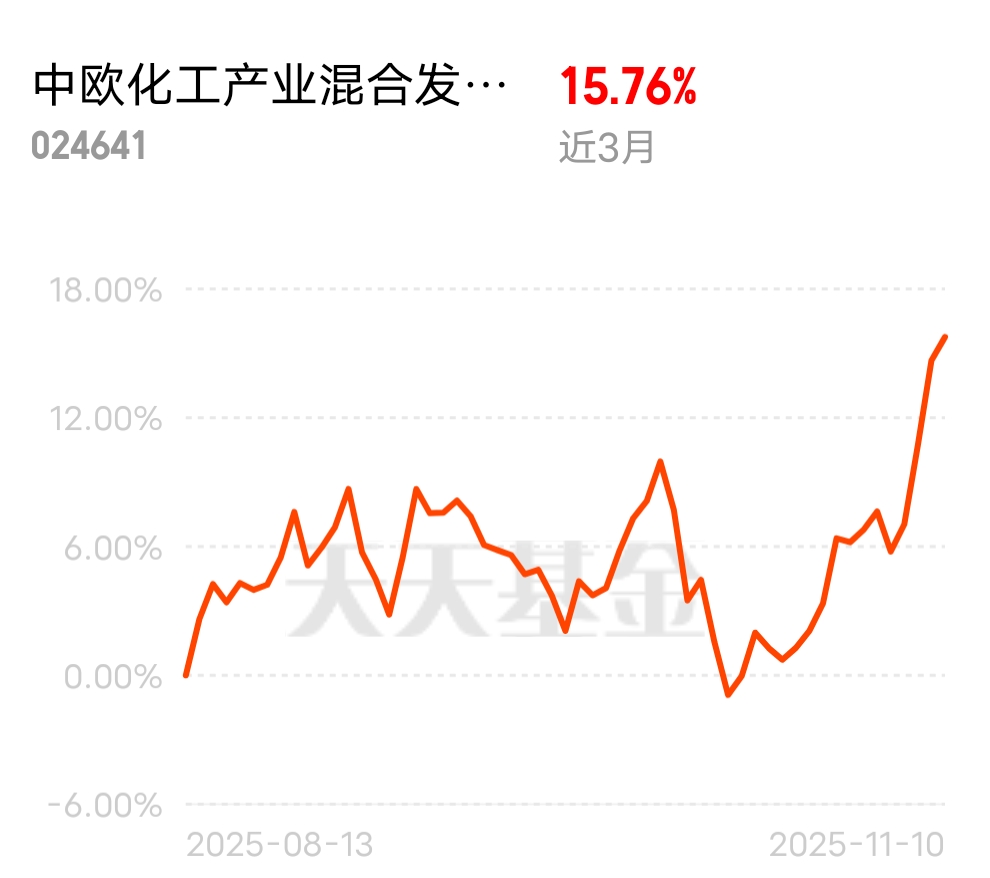 化工赛道的资金关注度越来越高,相关板块走势强劲。中欧化工产业混合C近3个月涨15