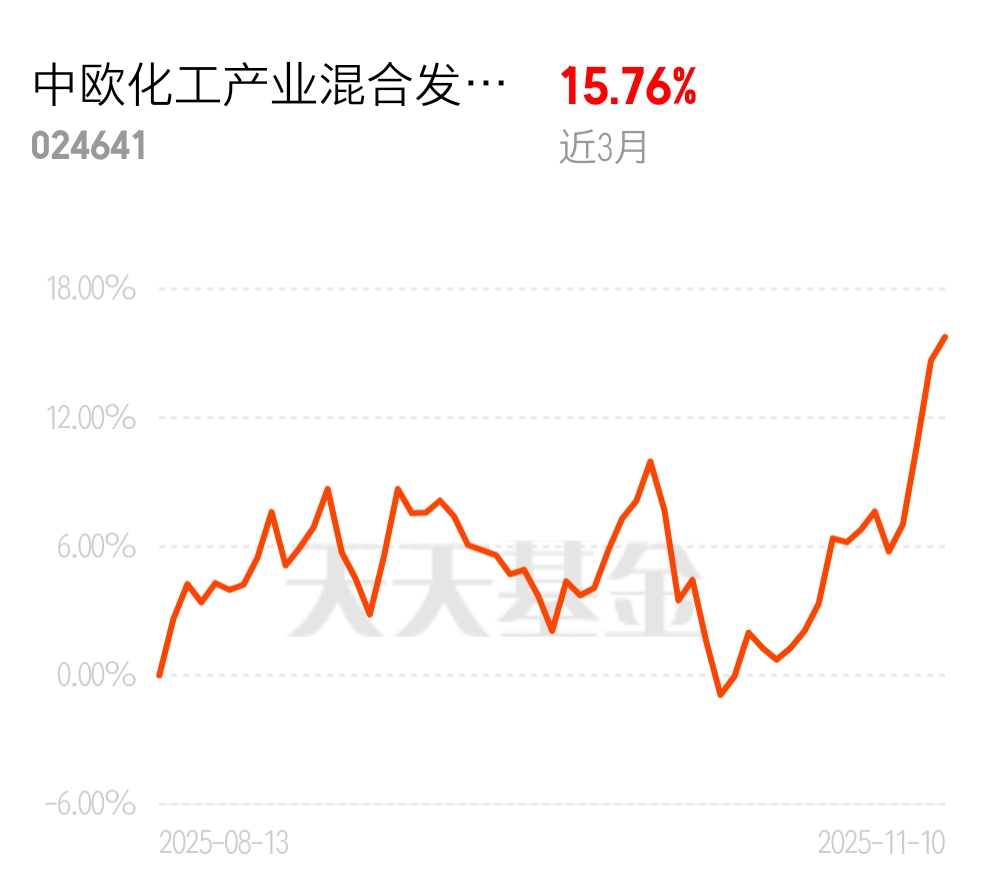 市场上主动管理的化工主题基金稀缺,中欧化工产业混合C不仅稀缺,业绩还很能打。近3个月涨15.76%,近6个月21.43%,跑赢指数拿超额收益,值得大家关注。 $中欧化工产业混合发起C$
