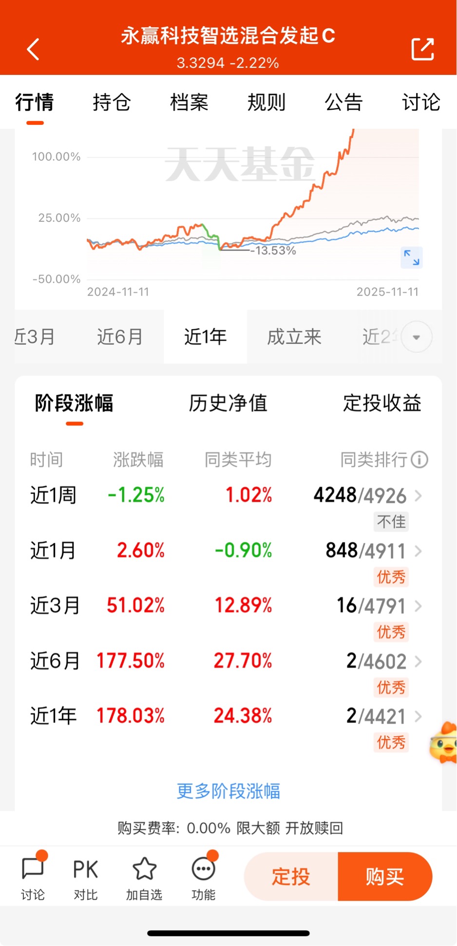 $永赢科技智选混合发起C$昨天的行情大家都一样,看看今天呀,近一个月收2.60%