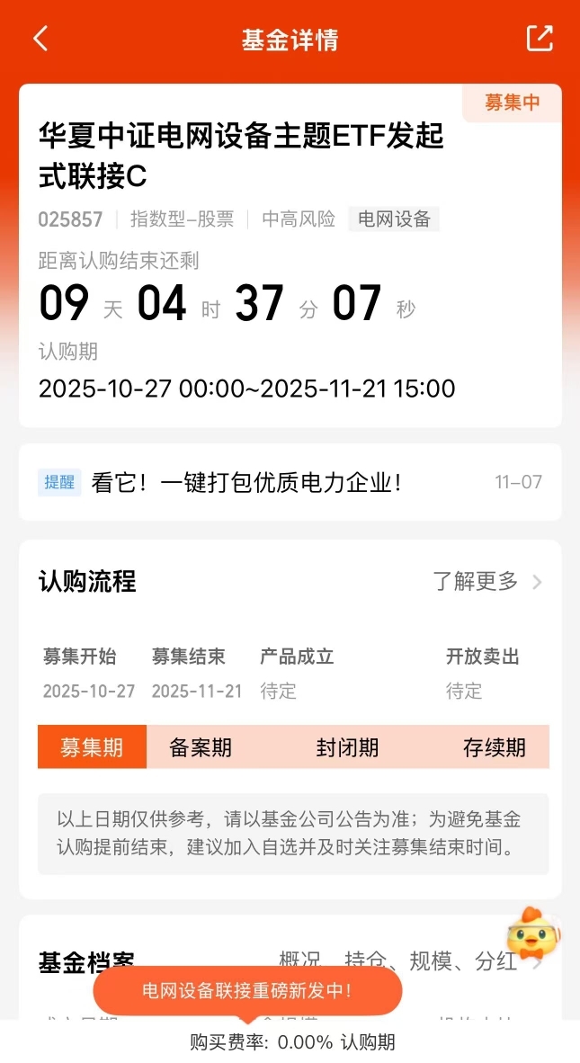 随着电力设备在钙钛矿电池的进步和AI意见下发,都将间接或直接的利好电力板块,场内近一个月收益10%+,近3个月收益31.99%,近6个月收益45%+,拿点新发基$华夏中证电网设备主题ETF发起式联接C$,开车后收益估计能不错,现在刚好在募集期,可以上了