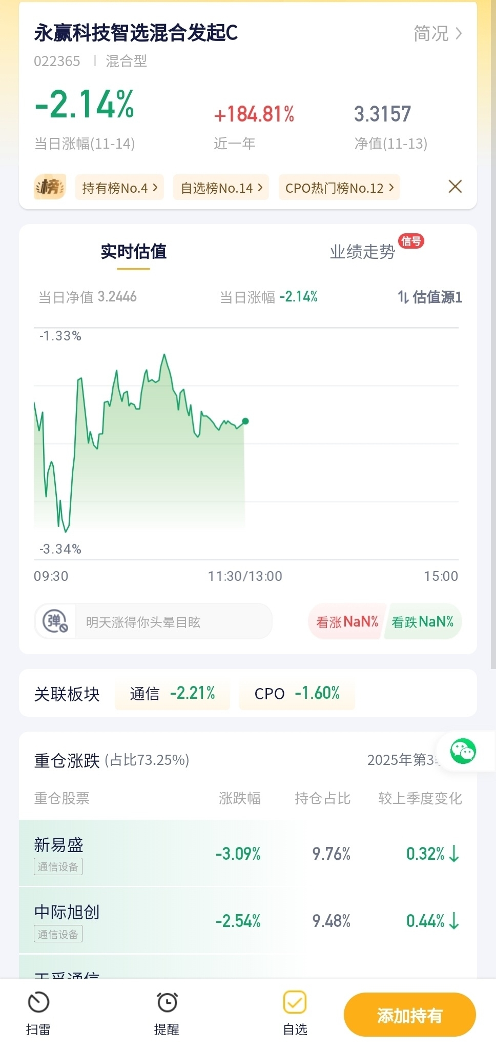 - 永赢科技智选混合发起C今日预估跌幅-2.14%!
