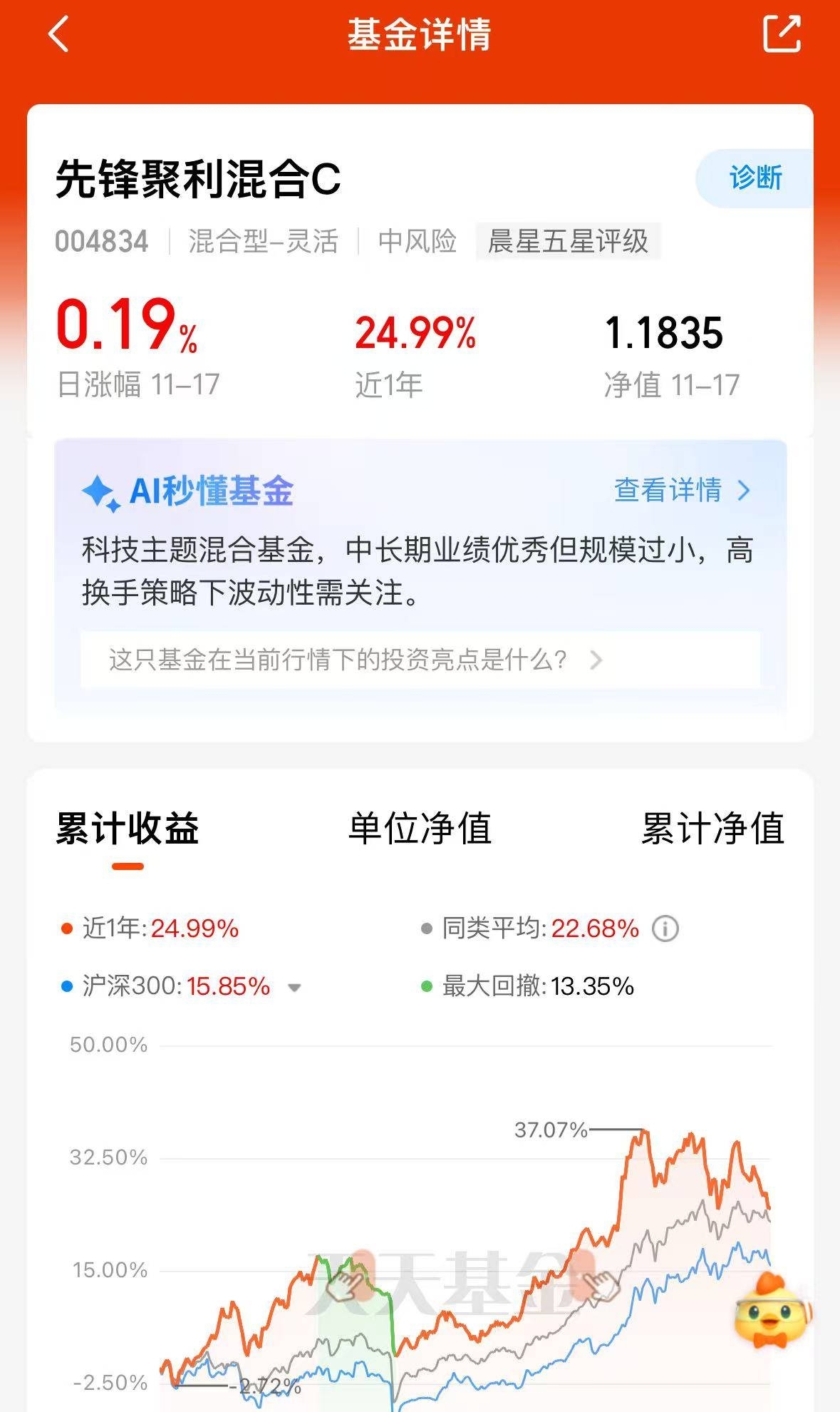 不跟着热点盲目切换,坚定持有先锋聚利C,它聚焦半导体、AI算力等硬科技方向,持仓