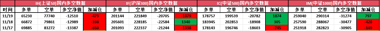 从11月期的沪深300期指数据来看,中信席位的多头主力增持多单88手,空头资金减持空单1163手,短期空头大力减持,压力有望减小。