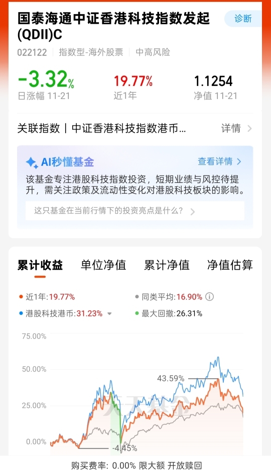 太惊喜了!港股今日强势上涨,我的$国泰海通中证香港科技指数发起(QDII)C$低