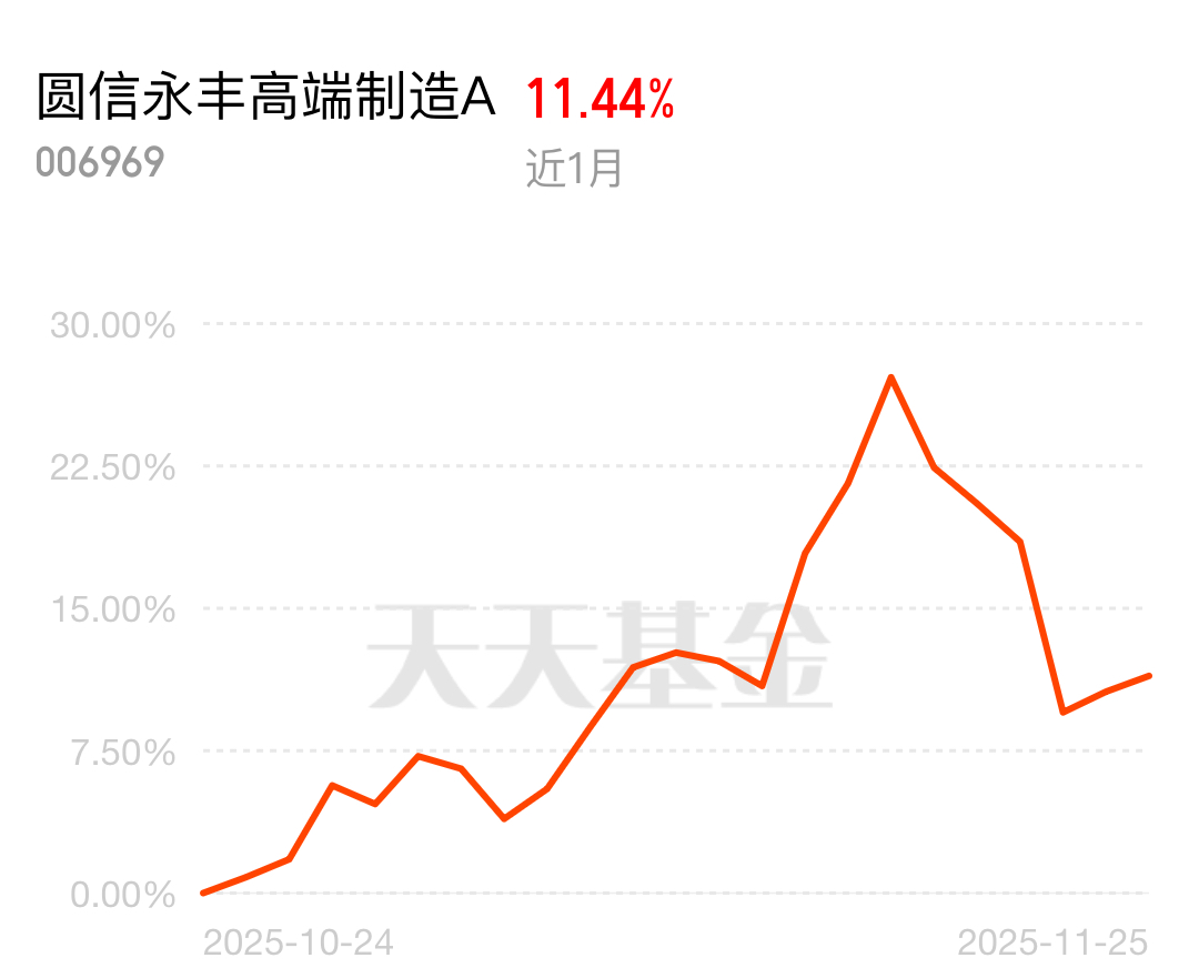电池前些日子涨得太疯啦,我一直怕追高没敢动手,最近回调力度挺大,刚好给了入场机会,赶得正巧,圆信永丰高端制造已经连涨两天了!
