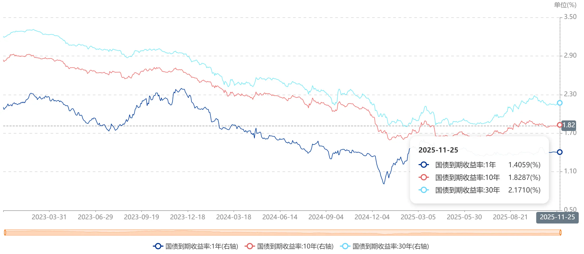 然后我们再看一下国债的情况,截止昨天(11月25日):