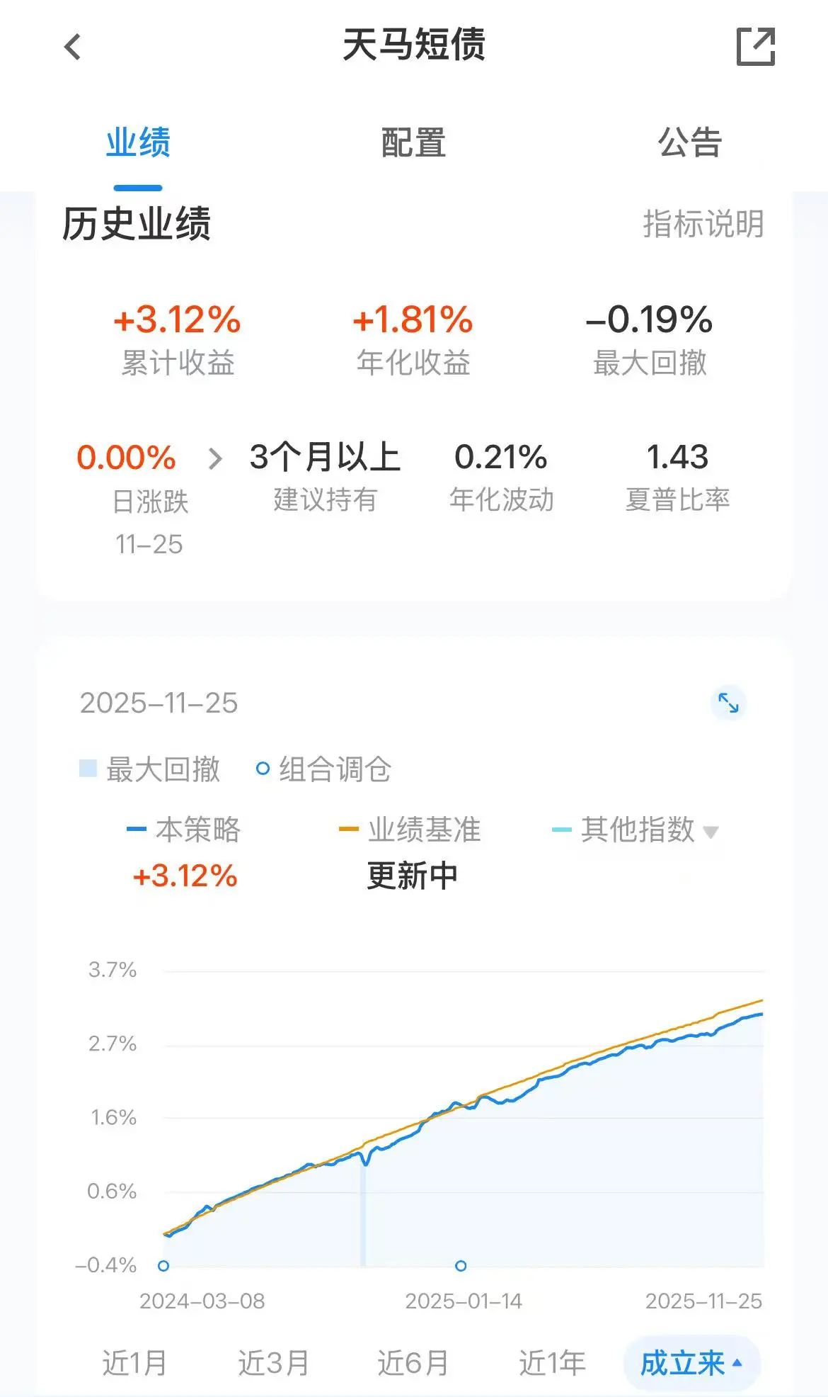 天马短债组合的累计收益是3.12%(图2);