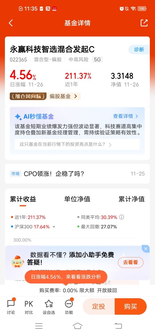 $永赢科技智选混合发起C$ CPO概念,超高弹性,昨天涨幅4.56%,近三个月涨幅23.54%,近六个月涨幅179.24%,近一年涨幅211.37%,有点东西,紧扣科技产业升级的核心逻辑,既关注企业的长期技术,在追求高弹性的同时,基金通过严格的风险控制,将最大回撤控制到最低,展现出“攻守兼备”的特质。#大科技普涨 CPO又冲了#