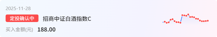 白酒,盘中$招商中证白酒指数(LOF)C(OTCFUND|012414)$触底冲高一下把大盘翻红了,然后又深藏功与名了。不过,我还是坚守了,目前参与白酒的投资者很少很少了,再洗几个月感觉就到位了,我不盈利太多不舍得走,继续格局了。