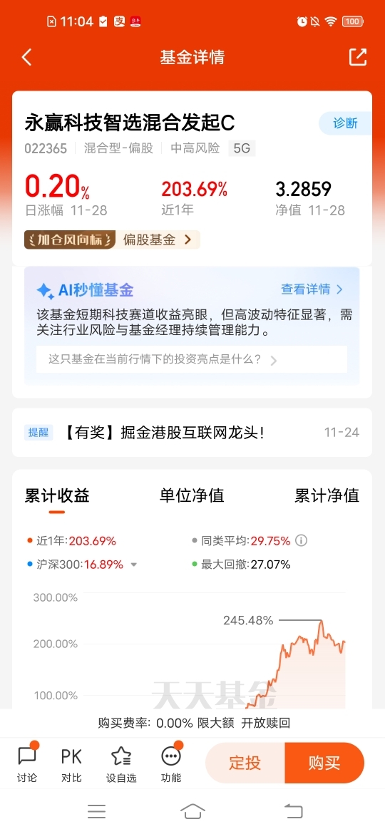 $永赢科技智选混合发起C$ 主打CPO,超高弹性,近一周涨幅6.45%,近三个月涨幅8.35%,近六个月涨幅173.26%,近一年涨幅203.69%,有点东西,紧扣科技产业升级的核心逻辑,既关注企业的长期技术,在追求高弹性的同时,基金通过严格的风险控制,将最大回撤控制到最低,展现出“攻守兼备”的特质。#华为将发布AI领域的突破性技术#