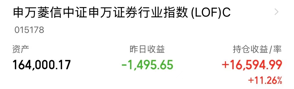 今天小涨走势,随着证券行业的合并趋势提速,有利证券行业头部的集中,而且今年A股日均成交量和两融余额环比都增长较多,基本面上行业也有支撑,所以我一点都不慌,我还是持续布局$申万菱信中证申万证券行业指数(LOF)C(OTCFUND|015178)$