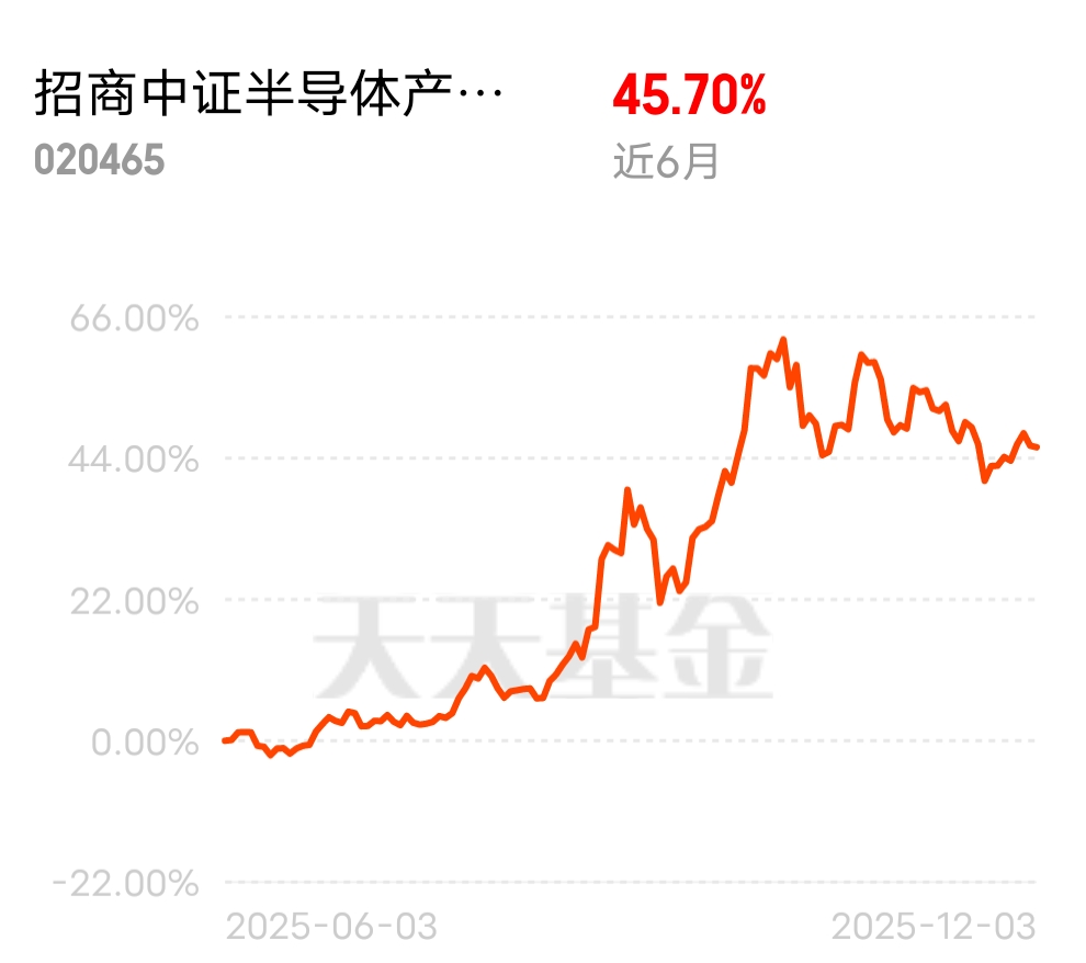 家人们听我的!招商中证半导体产业 C 近半年 45.70% 收益,今天再涨 2 个多点,国家 600 亿砸向半导体,跟风上车绝对不亏,赶紧买~$招商中证半导体产业ETF发起式联接C$