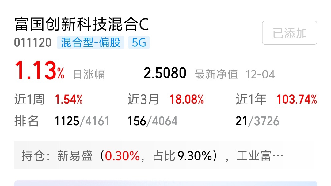 今天科技有所反弹。富国创新科技涨1.13%,比起来还不错。