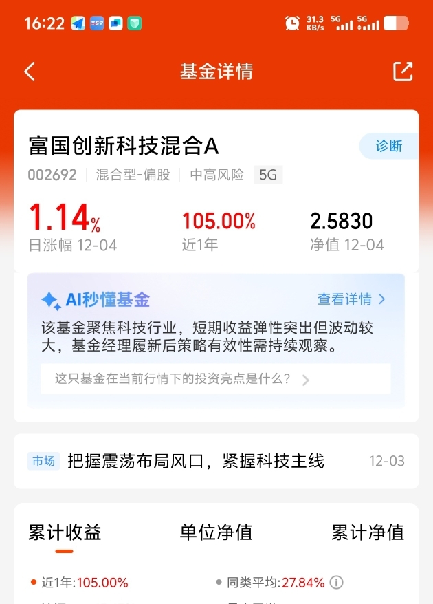 $富国创新科技混合A$昨天又是一个多点,表现不错值得期待