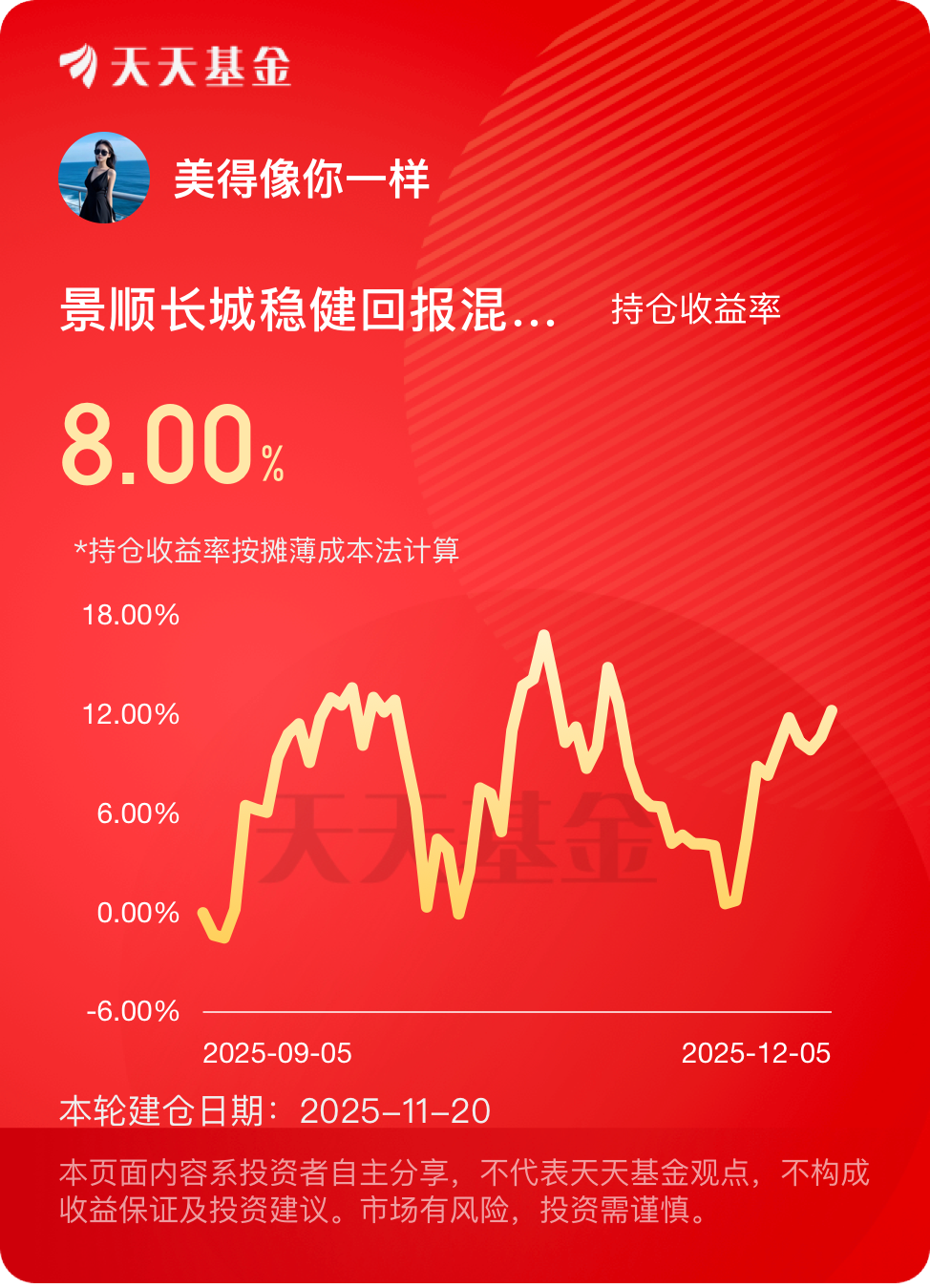 $景顺长城稳健回报混合C$是高弹性科技基,近一年涨幅118%,现在科技板块长线稳