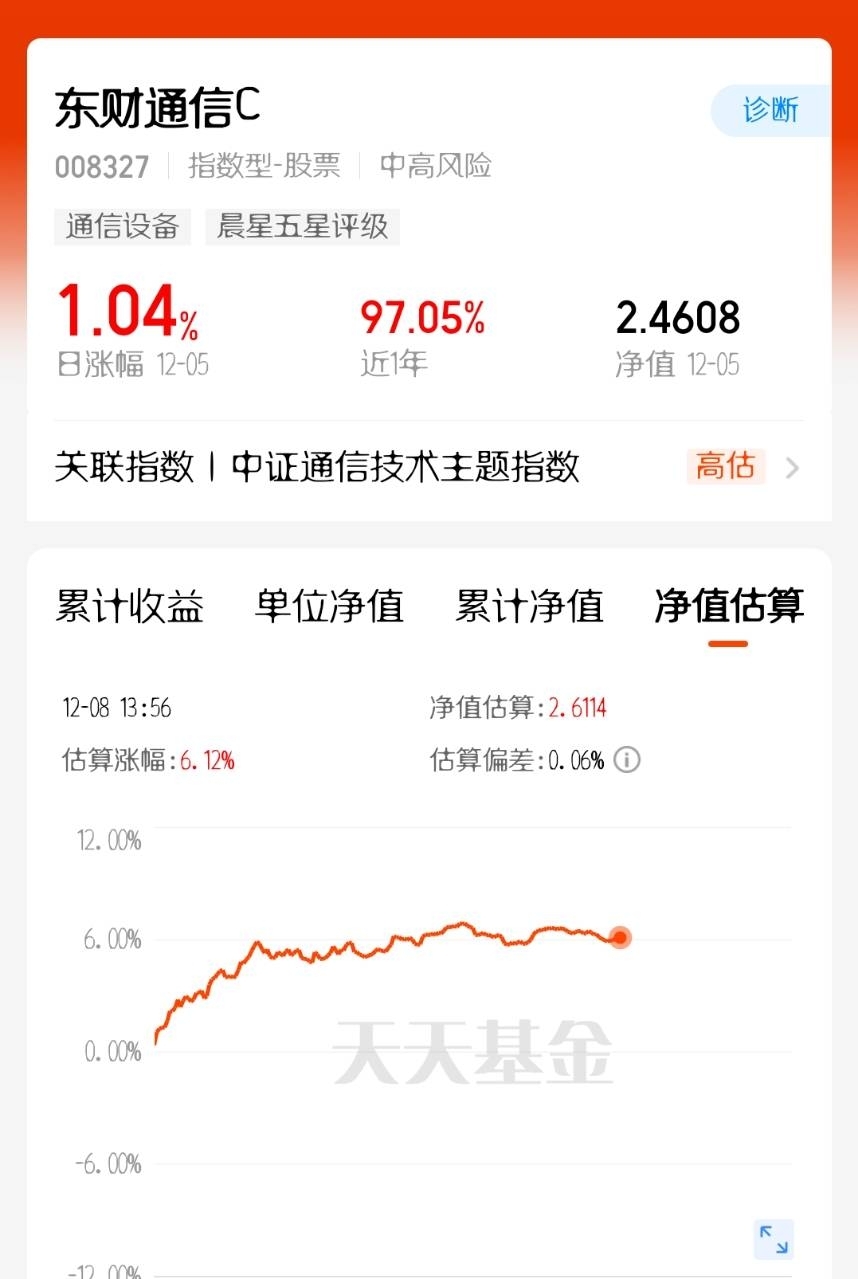 早盘 CPO 板块直线拉升,多只标的涨停,竞品估值水涨船高,$东财通信C$ 估值却绝对领先!我从其他基金转换过来,它重仓 CPO 光模块是纯指数,7 免且指数不漂移可转换,今天估值快 6 个点,这波转换太明智。
