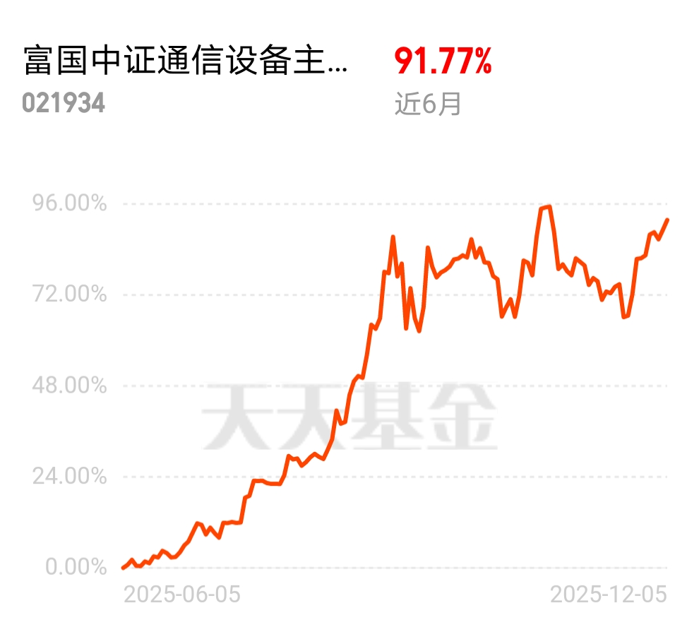 这段时间永赢科技智选C横盘不动,就把部分仓位挪到了富国中证通信设备主题ETF联接C,它聚焦中兴通讯、中际旭创,还是全市场这两只股配得最多的;成分不只有CPO龙头,还搭上军工通信和卫星互联网,往后有双重受益。近1个月涨8%、近6个月92%,今天基金预估大涨,在同类里面领先。成分公司这季度赚的钱比上季多11%,估值也比过去五年28%的时间低,今天基金预估大涨,在同类里面领先。