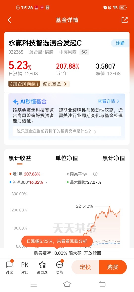 $永赢科技智选混合发起C$ 主打cpo,今晚更新涨幅5.23%,近一年涨幅达207.88%