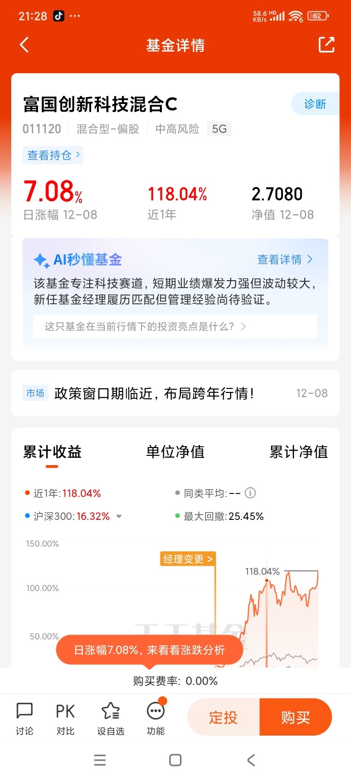 今天大盘指数高开高走,继续上涨,最近股市行情反弹,科技板块回暖拉升,看看今晚净值情况