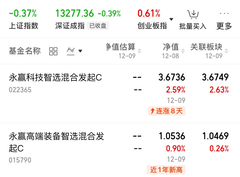 $永赢科技智选混合发起C$ :主投热门赛道科技板块,今天逆市大涨2.59%,已经连涨8天挺给力呀