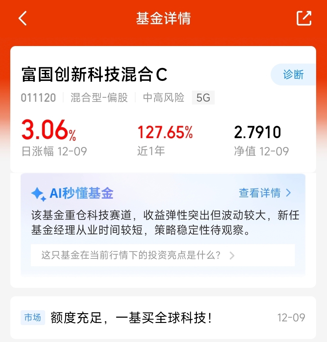 $永赢科技智选混合发起C$昨天就涨了2.59%,看着富国创新科技昨天也涨了3.0