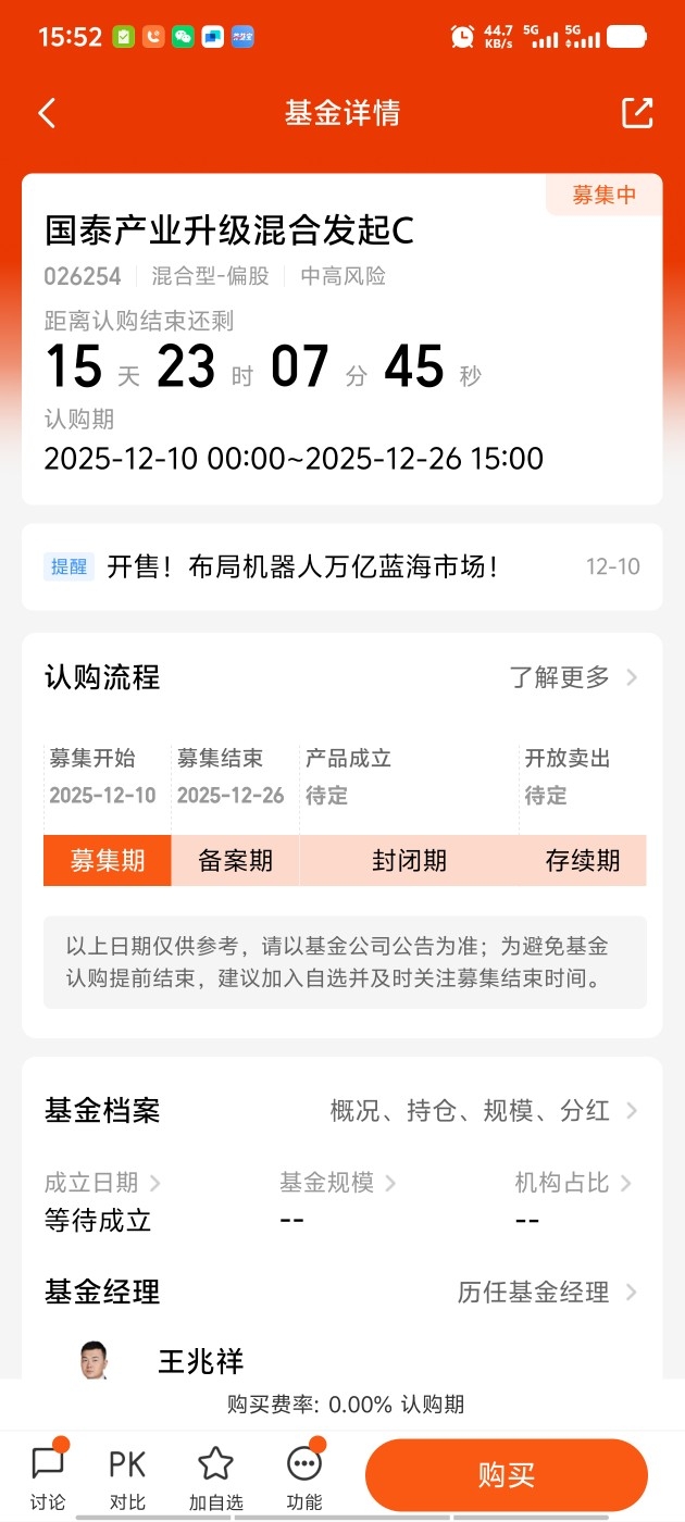 以前总觉得机器人是科幻片里的,但去年春晚看到机器人扭秧歌,今年又看到它们跑马拉松、搬东西,感觉技术是真突破了,离我们生活越来越近。看到国泰产业升级C这个新基金发行,主题就是投这个。我看了资料,说2025年是“量产元年”,而且资金也疯狂涌入,一级市场半年就融了快400亿,是去年全年的1.8倍!这说明资本在用真金白银投票。新基金这个时候出来,时机挺好,基金经理是“灰马”猎手,我觉得可以小仓位尝试一下,就当是投资未来的生活方式了。