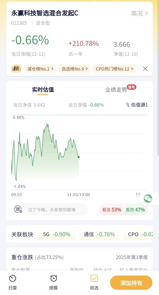 永赢科技智选混合发起C今日预估跌幅0.66%!