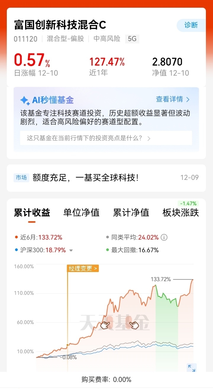 富国创新科技混合C$富国创新科技混合C$近6个月狂赚超133%,业绩爆发力拉满!