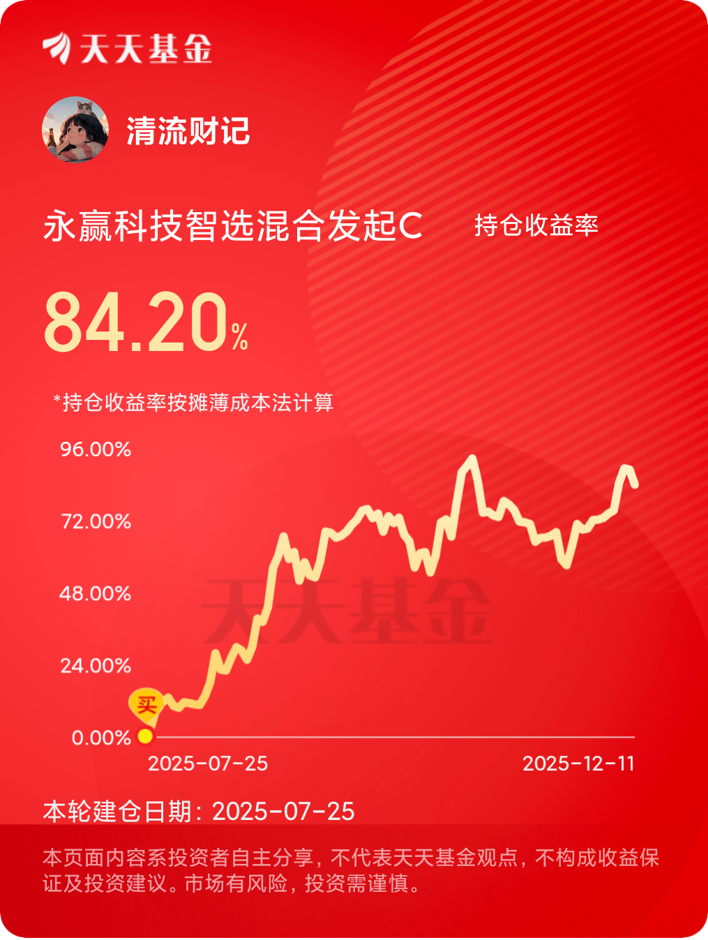 #美联储宣布降息25个基点 如何布局?# #茅台批价触及1500元 “挤泡沫”何时结束?# 最近有一个小伙伴问个有意思的问题,说虽然看着A股指数涨了不少,从低点2689到高点接近4000,涨了1300多点。但是为啥这一千多点上来,好像没有感受到任何赚钱效应,而且散户群体亏损严重。可能这种疑惑很多人都有,其实这种感觉确实没错,而且看看统计数据业非常清晰。因为截止到2025年11月底,仅有428家上市公司涨幅超过100%,占比仅为7.8%。我们一直说从去年924到现在,一直都是结构性的牛市,而且结构的的分化非常明显,确实也是这个情况。这类涨幅比较大的,在五千多家上市公司里面,算总占比的话可能还不到百分之十的样子。也就是说虽然指数上涨了一千多点,但基本结构性的分布在科技、周期和红利三大板块。如果你没有跟上结构化行情的科技和周期红利主线的话,这段涨幅基本是和你没啥关系的。接近九成左右的上市公司,在这期间的波动并不是很大,甚至有不少还在三千点上下的位置徘徊。这个剧烈的结构分化,也体现了这轮结构行情的特点,占比一成的上市公司是上涨的主力,剩下九成也就那么回事。如果你不是在这占比一成结构性上涨的公司里面,你也感受不到啥赚钱效应。要是这期间不断的追热点,因为这些热点的持续性不强,甚至可能左右打脸反复亏损。所以对大多数人来说,虽然从四月份至今指数看起来上涨了一千多点,但大家并没有感受到太多赚钱效应。#晒实盘# $永赢科技智选混合发起C$ #晒收益#