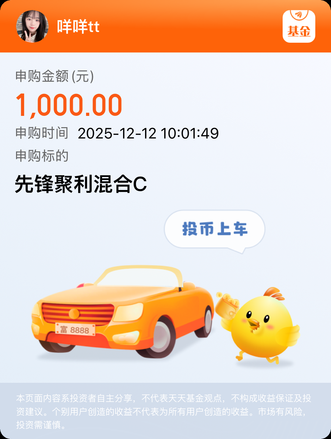 我加1000元 $先锋聚利混合C(OTCFUND|004834)$