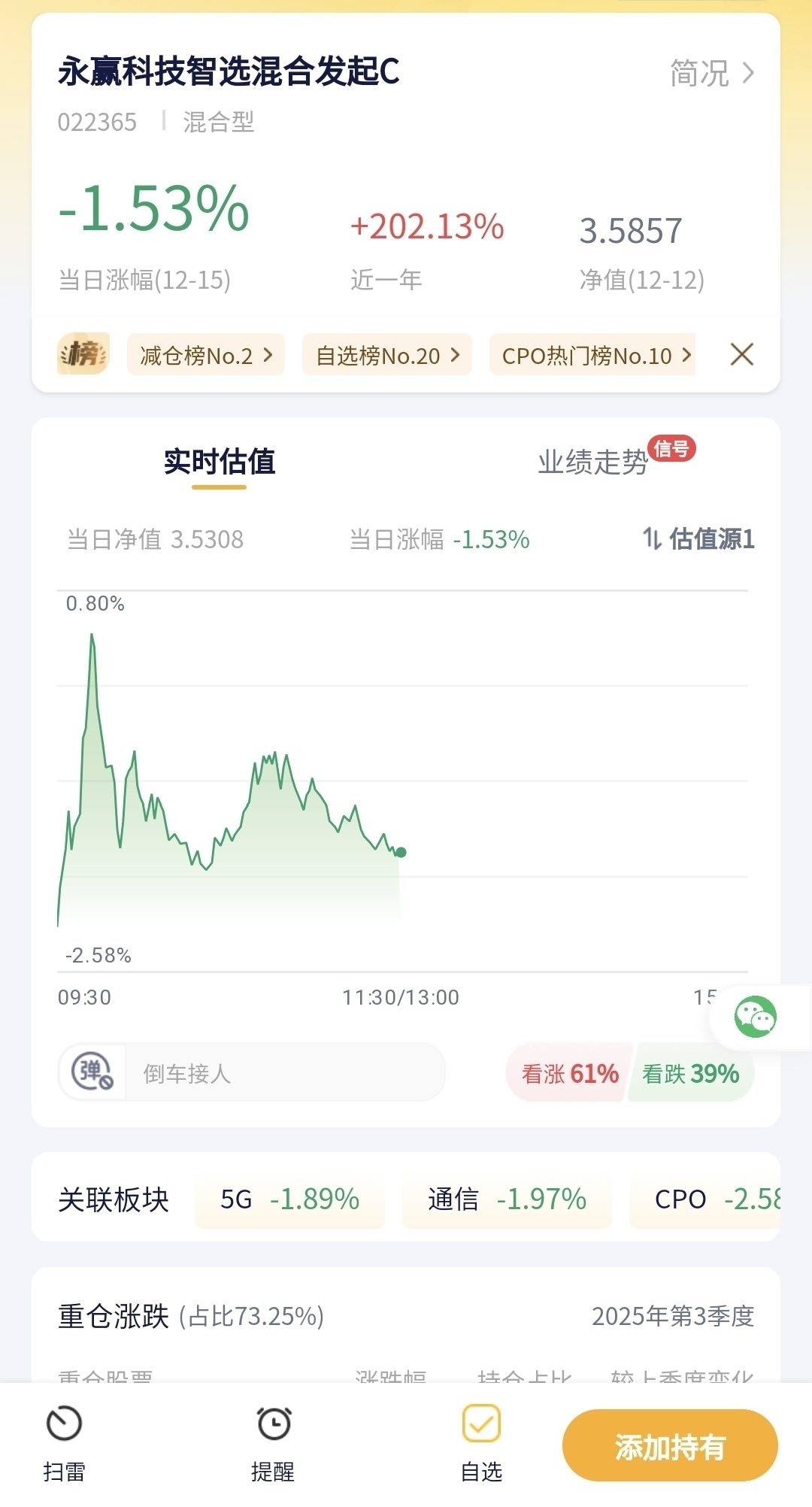 永赢科技智选混合发起C今日预估跌幅1.53%!