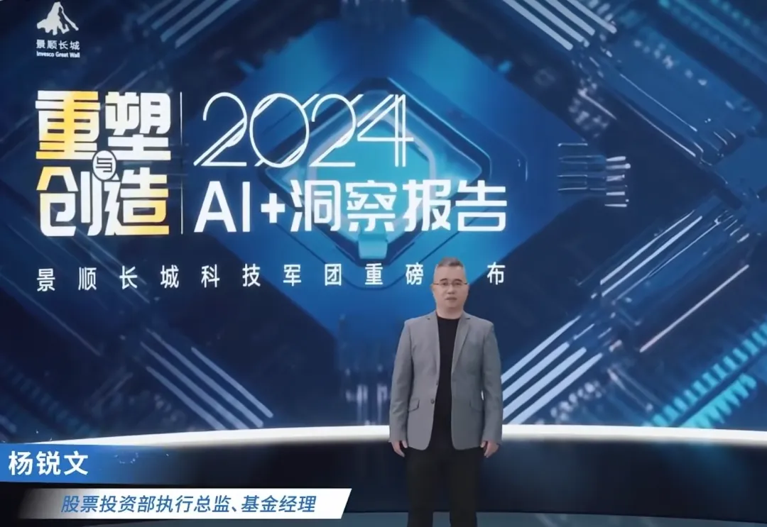 说起景顺长城的科技军团,不得不提及领头人杨锐文。在他带领下,景顺长城从2020年末开始做科技行业年度报告会,连续4年坚持,给出相关研究报告——从半导体到新能源,再到现在的人工智能(AI),每一次都紧扣前沿热点,发掘最新的产业趋势。