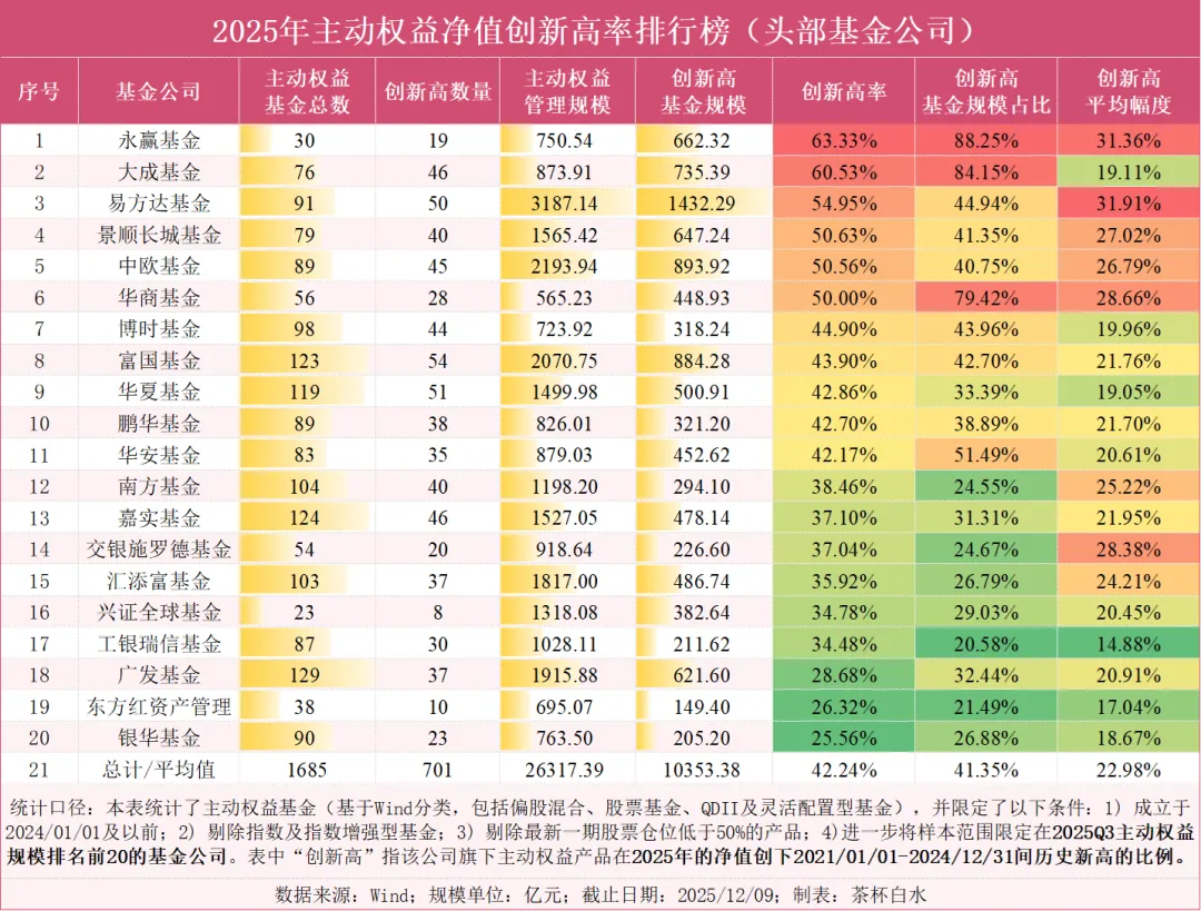 这一指标既反映投研体系的扎实程度和风险控制水平,也折产品布局的合理性——创新高率高的公司,往往拥有更成熟的投研机制和均衡的团队配置,而非依赖明星基金经理的“单点突破”。