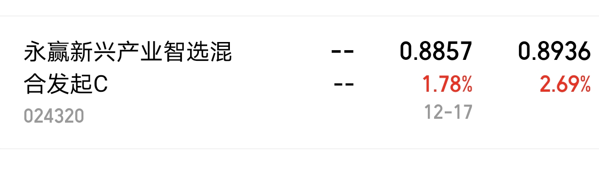 $永赢新兴产业智选混合发起C$ 今晚更新,上涨1.78%,我觉得这波上涨才刚刚开始,跨年行情也是值得期待。#沐曦股份今日上市!中一签能赚多少?#