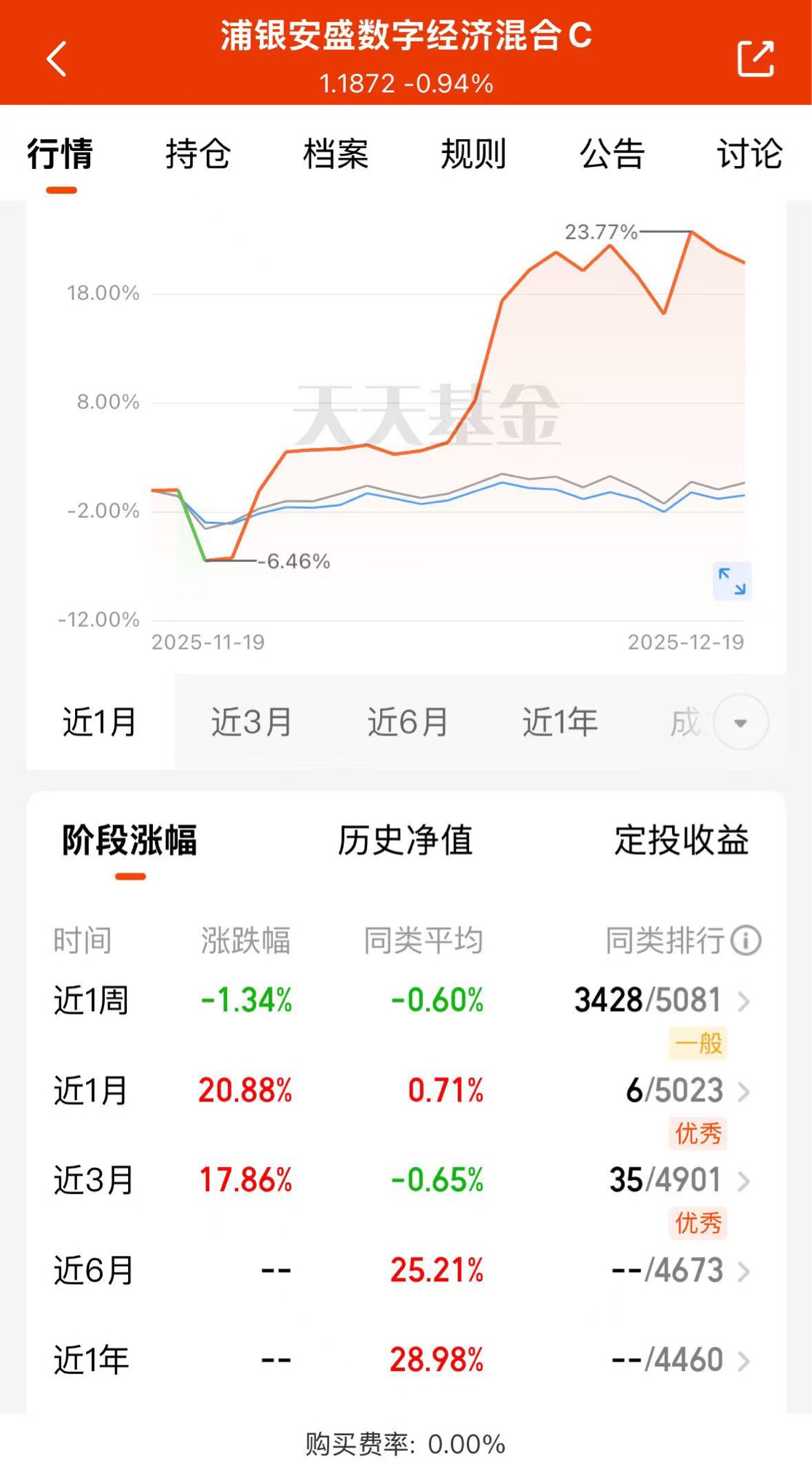 20个交易日,浦银数字经济就涨了14天,近一个月涨了20%,今天继续涨,抓好扶稳继续发车了$浦银安盛数字经济混合C$