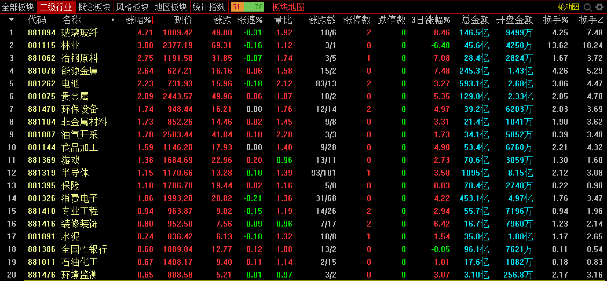 日线级别上涨趋势板块有:
