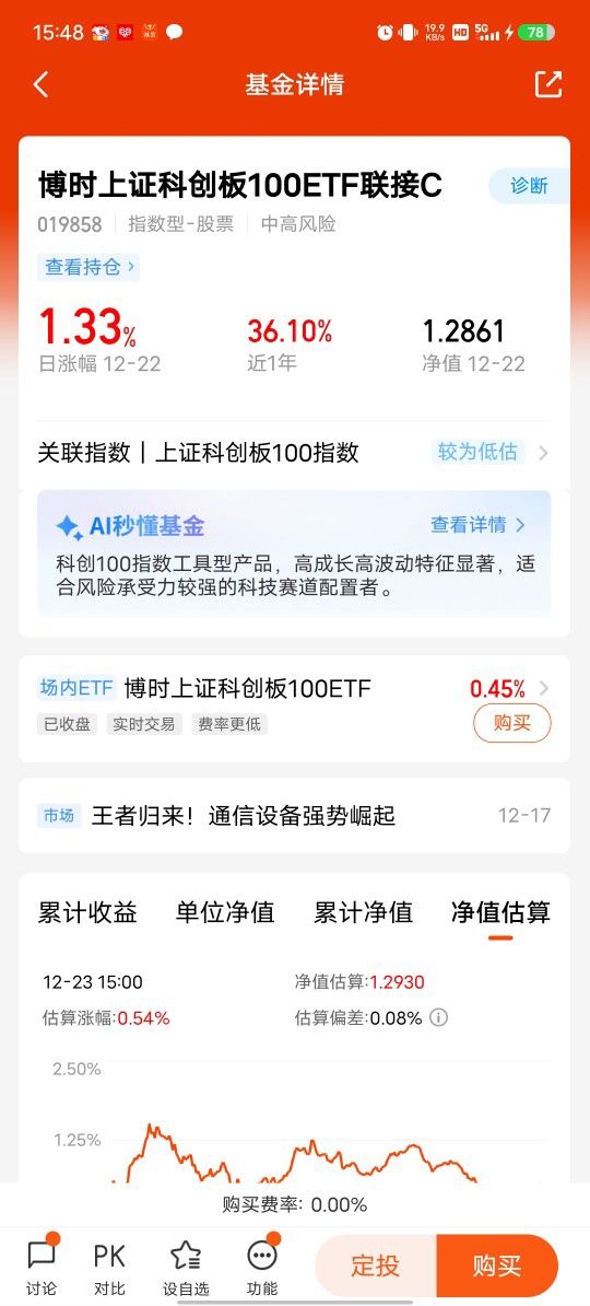 $博时上证科创板100ETF联接A$ $博时上证科创板100ETF$ 最近一个月涨6.72%,今天又踩着长征十二号甲首飞、三星2nm落地的轮动风口冲!政策还在给硬科技“加 buff”:保险资金能多买科创了,今天直接带飞半导体;加上十五五重点砸高端制造,科创利好一个接一个。这只基金不光能跟科创100节奏,还精准盯光模块、卫星互联网最火的方向,不用自己盯盘选股,看到政策利好、资金进场就上车,赚了就落袋,进出成本还低。