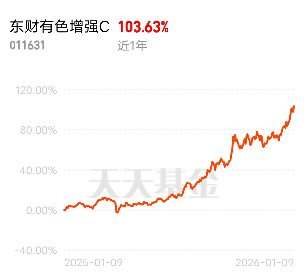 开年不少热门概念凉得快,过时一个多月还抱着的都亏麻了!资源股正处黄金期,有色供需缺口越拉越大,东财有色增强 C 近 1 年 103.63%,指增基金就是有劲,比别家同类表现强太多!$东财有色增强C$