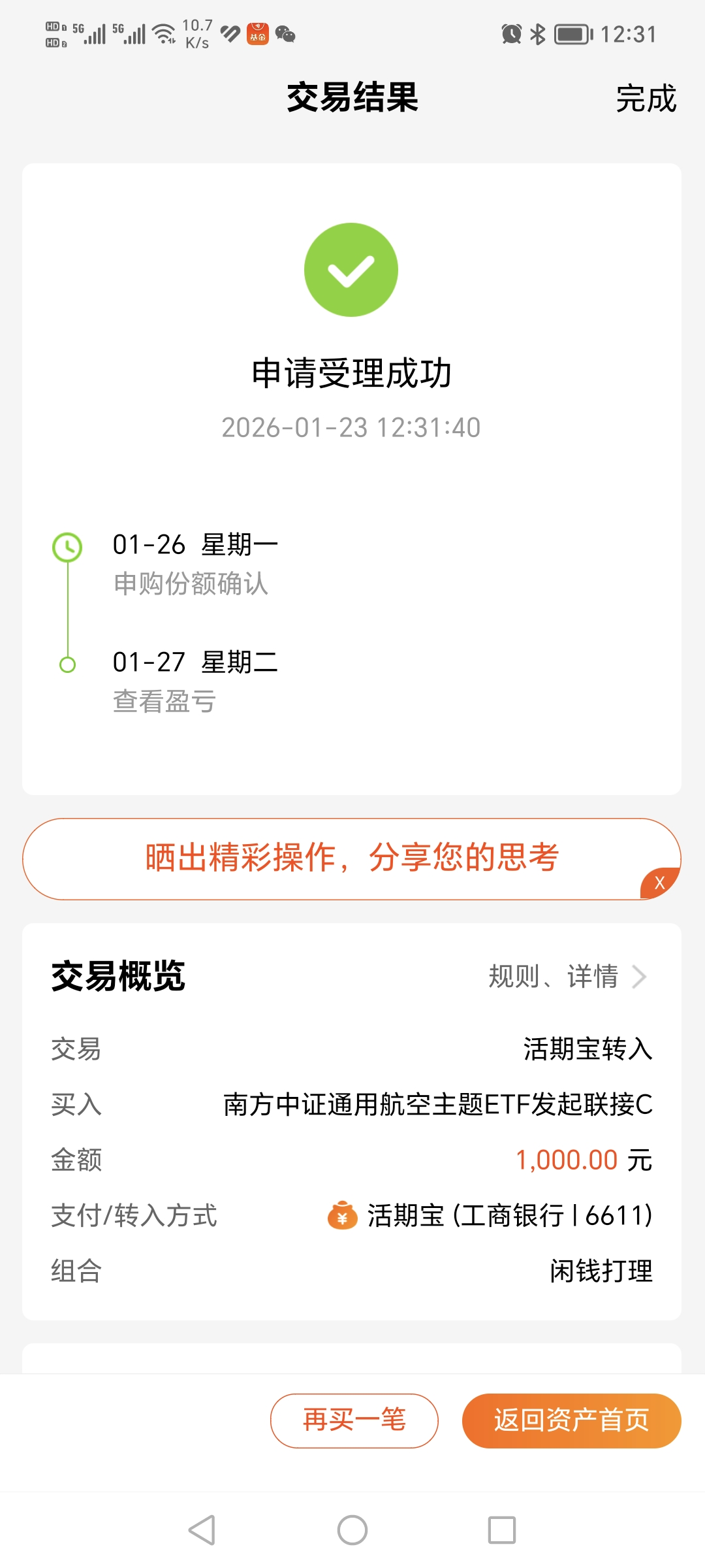 $南方中证通用航空主题ETF发起联接C(OTCFUND|025693)$今天加仓1000元。