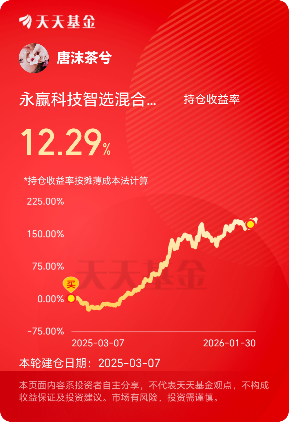 行情不明朗,千万别追涨杀跌,握住手里的筹码,静观其变。$永赢科技智选混合发起C$ #晒收益#