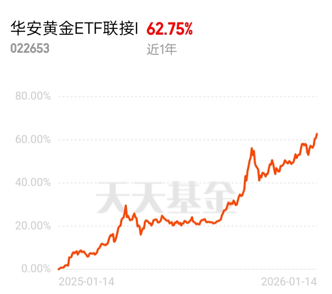 $华安黄金ETF联接I$ 太香了!费率最低 + 7 天免赎回,近 1 年涨 62.75%,黄金赛道稳稳抗波动,成本超划算