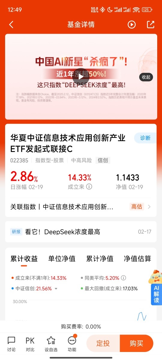 #“DeepSeek浓度”最高的指数是哪只?# 打卡第5天$华夏中证信息技术应用创新产业ETF发起式联接C$