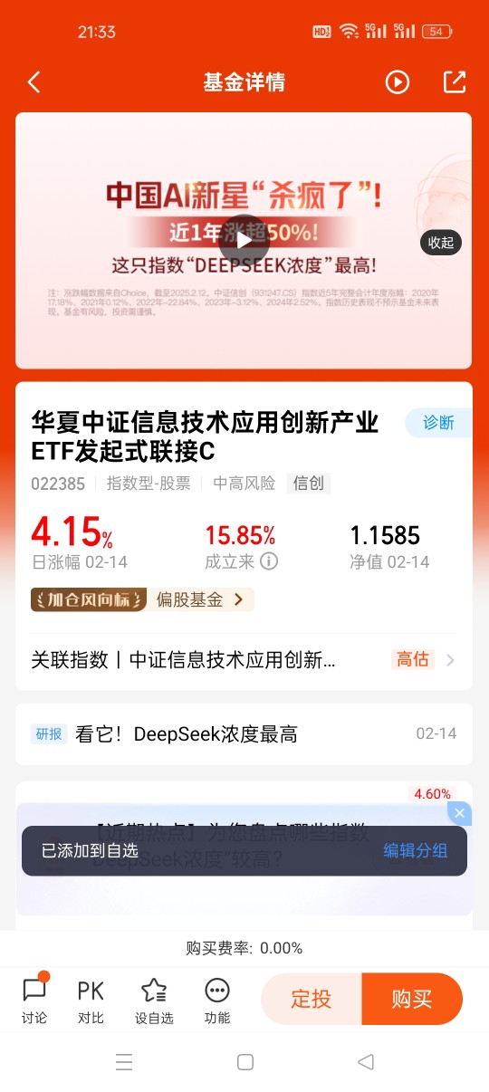 #“DeepSeek浓度”最高的指数是哪只?# 打卡第25天,$华夏中证信息技术应用创新产业ETF发起式联接C$,中国科技领域正经历着一场深刻变革。国产AI大模型deepseek的横空出世,极大地刺激了半导体、人工智能、软件、硬件、信息安全等细分板块,这些板块在近期涨幅喜人,成为投资市场的焦点。而华夏中证信息技术应用创新产业ETF联接C,因其紧密跟踪的中证信创指数,精准聚焦上述细分板块,在这场科技盛宴中备受关注,其后续行情也被众多投资者所看好。