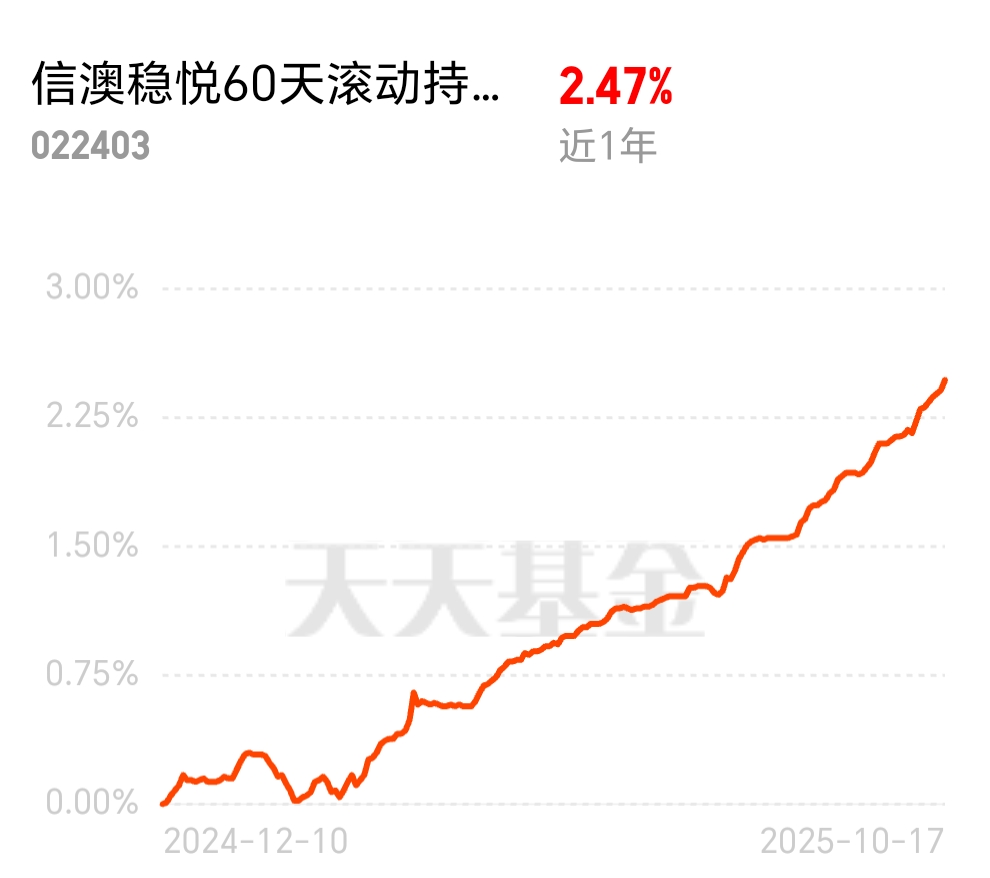 $信澳稳悦60天滚动持有债券A$这波连涨太稳了吧,我也买点试试看