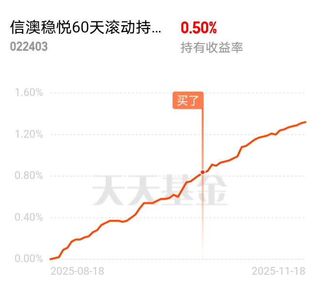 $信澳稳悦60天滚动持有债券A$ 在慢牛行情里体会到了减震作用