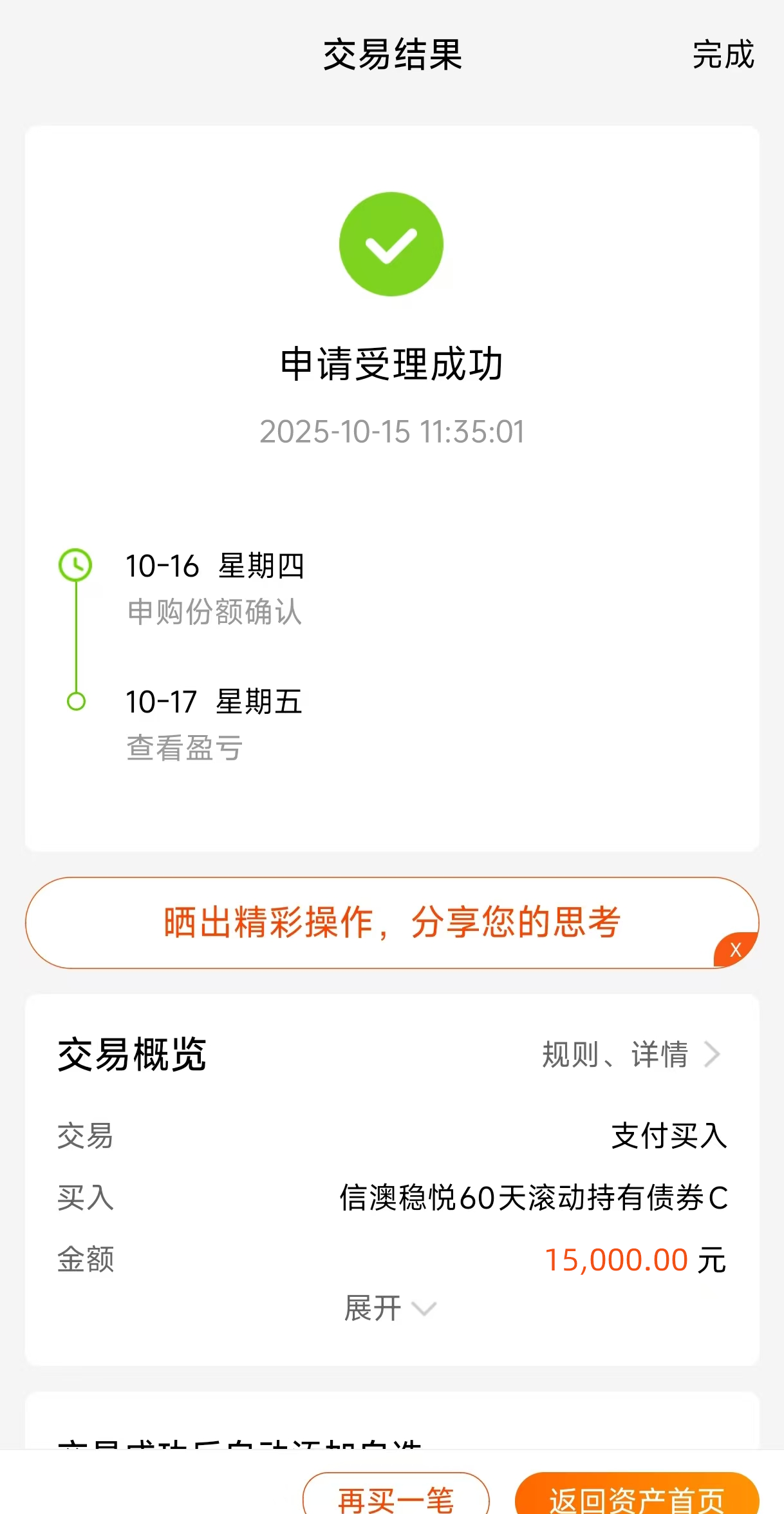 要说债基里哪个好,我觉得$信澳稳悦60天滚动持有债券C$(022404)真的不错,今年业绩排前1%,走势也非常稳,今年就涨了2%。我观察了一段时间,它的净值曲线是慢慢向上走的,这种“细水长流”的感觉反而让人更安心。对于我们普通投资者来说,不需要去判断复杂的经济走势,只需要选择一款与自己投资习惯相符的产品就好。60天的滚动持有期,既能帮我管住“手痒”总想操作的毛病,又给了资金一定的灵活性,我觉得是打理短期闲置资金的一个不错选择。#黄金逼近4200美元!美银:明年5000#